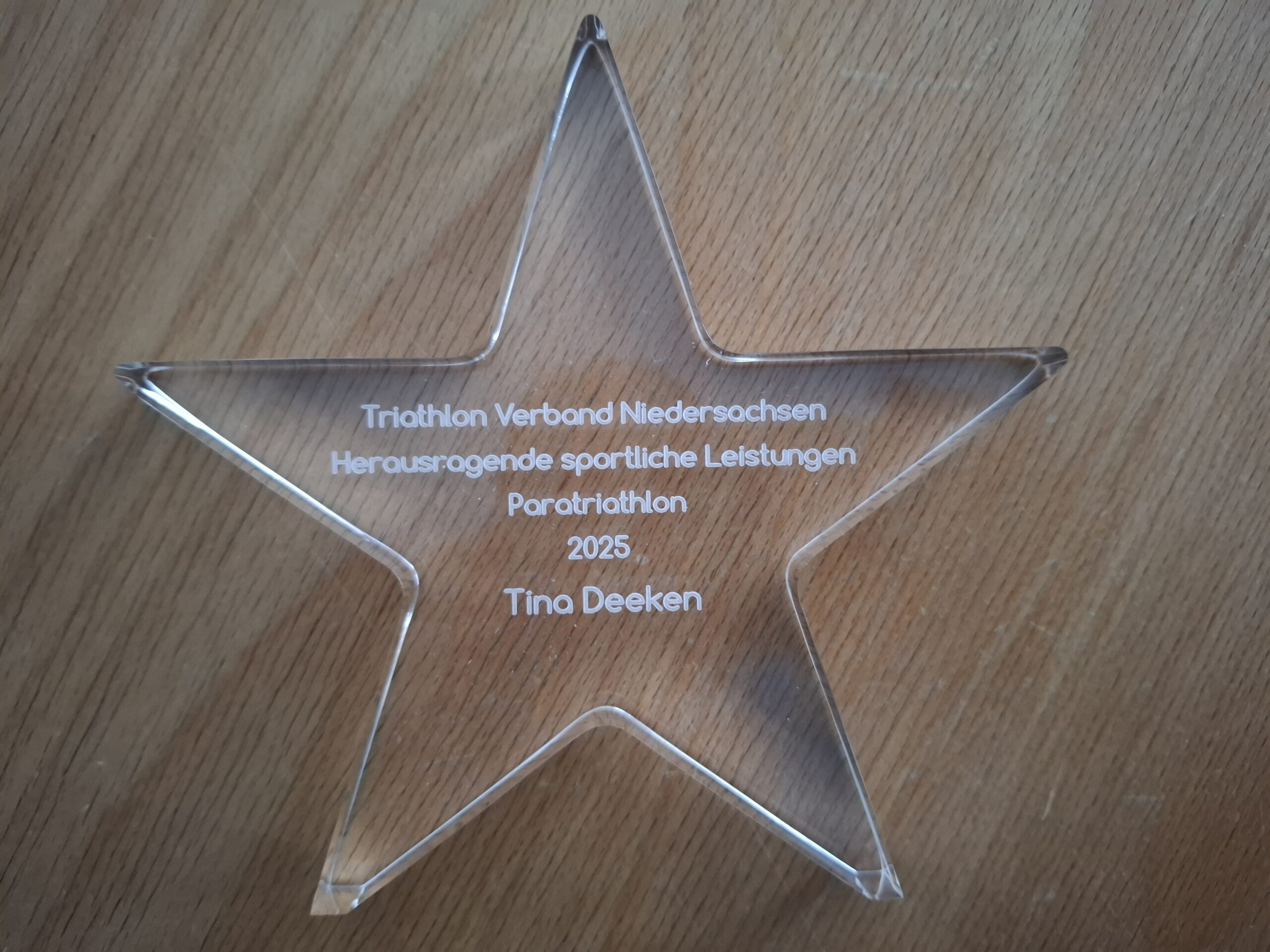 Unsere Para-Triathletin Tina Deeken wurde vom Triathlon Verband Niedersachsen (TVN e.V.) mit dem „Stern des TVN“ für ihre herausragenden sportlichen Leistungen im Paratriathlon 2025 ausgezeichnet.
