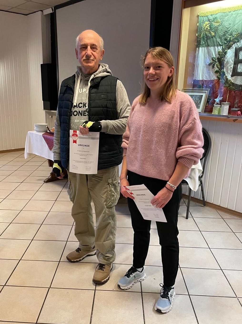 Dabei waren Menschen, die dem Verein schon 70 Jahre angehören, aber auch die „jüngsten“ Jubilare, die vor 25 Jahren Vereinsmitglied geworden sind. Dabei zeigt sich oft, dass manche der Jubilare schon im zarten Kindesalter zum ersten Mal in der Mitgliederkartei auftauchen. Das spricht für die Verbundenheit der Familien mit dem VfL Eintracht, für die Ehrenpräsidentin Hedda Petermann und Vizepräsident Stefan Roeder herzlich dankten. Diese Tatsache wurde dadurch unterstrichen, dass der Vizepräsident seine eigene Tochter Franziska für ihre 25 jährige Vereinszugehörigkeit ehren durfte. Ein besonderer familiärer Moment!