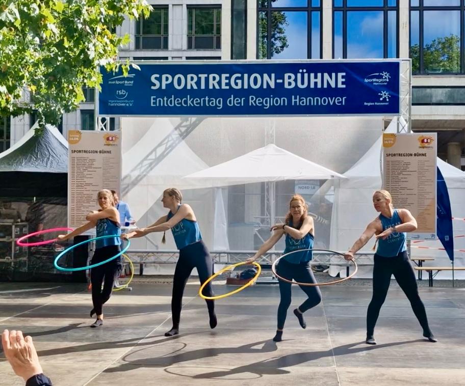 Auch auf der Sportbühne zeigte der VfL Eintracht Hannover sein Können: Lena und Jenny präsentierten mit ihren Tanzgruppen „Sunny Dancers“ (Kindertanzen) und „Star Dancers“ (Contemporary und Hip-Hop) eindrucksvolle Auftritte, während Rosi mit den „Hannover Hoopies“ beim Hoop Dance begeisterte.