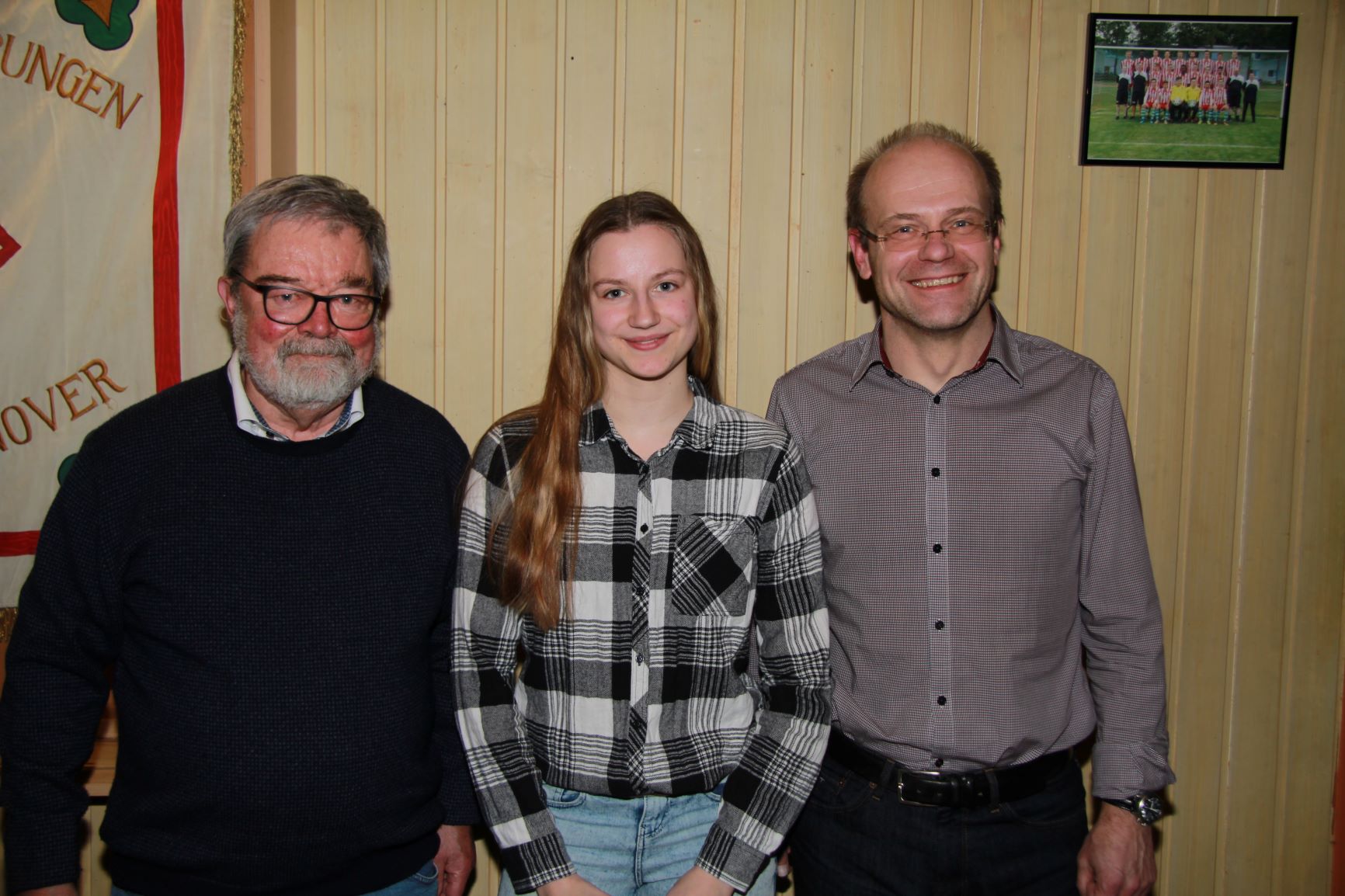 Lilli Böder erhält DLV Gold, schnelle 100 m‑Sprinterin, zusammen mit Peter Hampe (links) und Frank Förster.